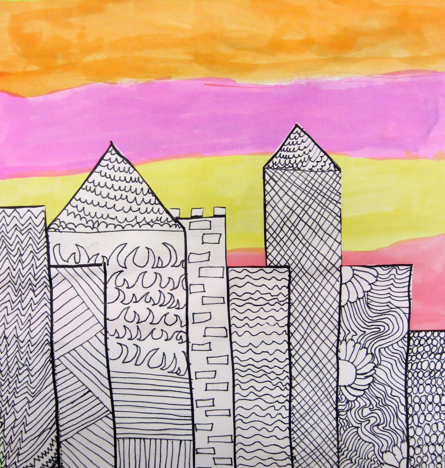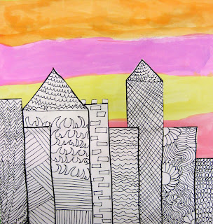 1st grade learned how to draw an interesting perspective of themselves. They also added snow globes in their mitted hands. Great job! SO CUTE! These were painted with my new liquid watercolors (which I love!)
